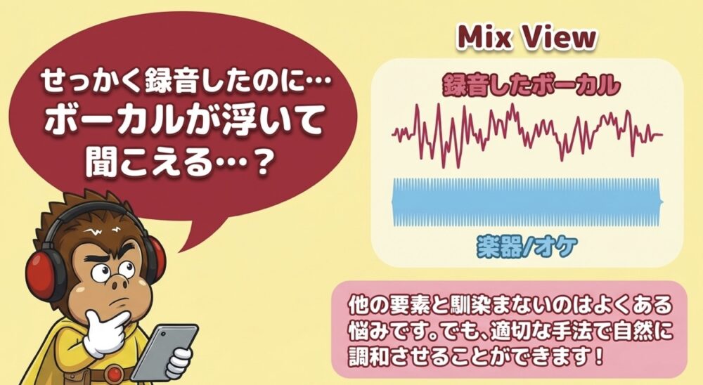 GarageBandを使って音楽制作を行う際、ボーカルトラックが他の要素と馴染まない場合があります。