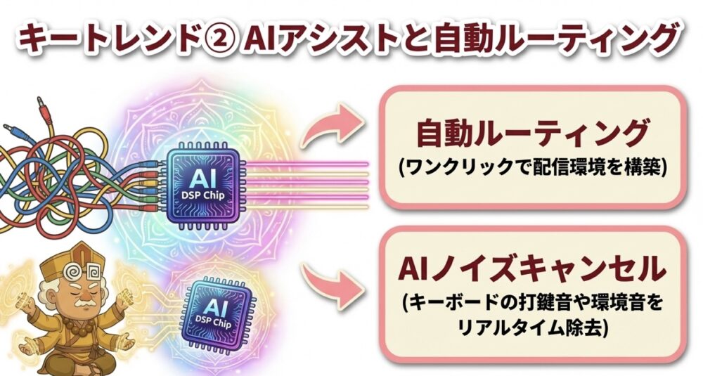 かつて初心者を挫折させた複雑な信号経路の設定は、AIが接続状況を判断して最適化する時代になりました。