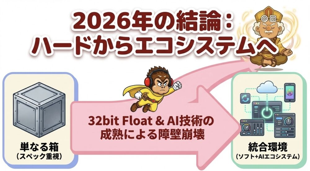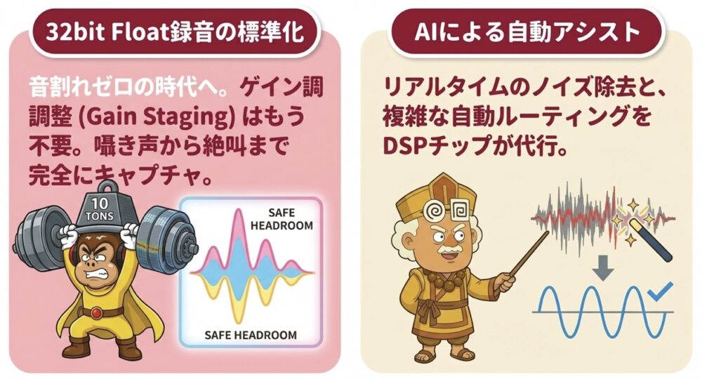 32bit FloatやAIの恩恵により、ユーザーはもはや「技術的な設定」という障壁を意識することさえありません。