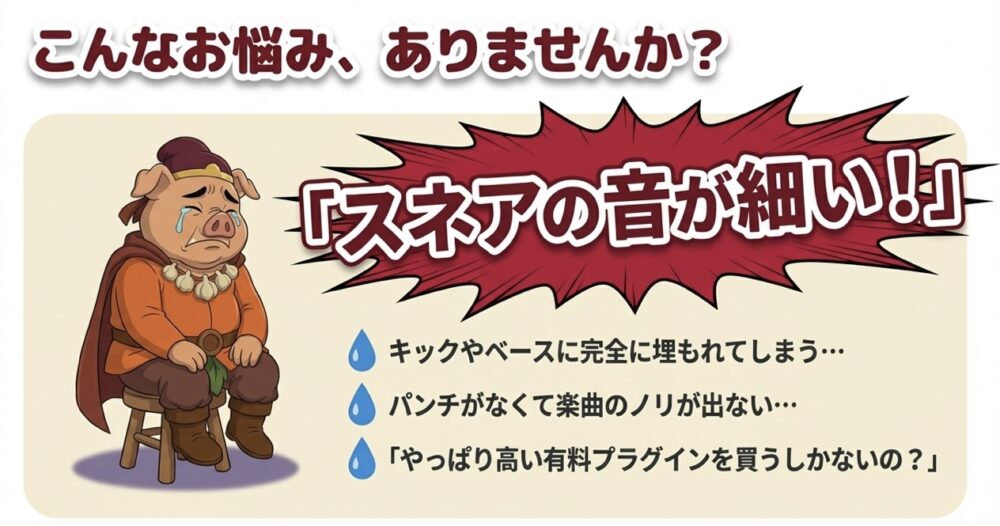 「音が細くてミックスに埋もれる」「パンチが足りず、他の楽器に押し負けてしまう」……。