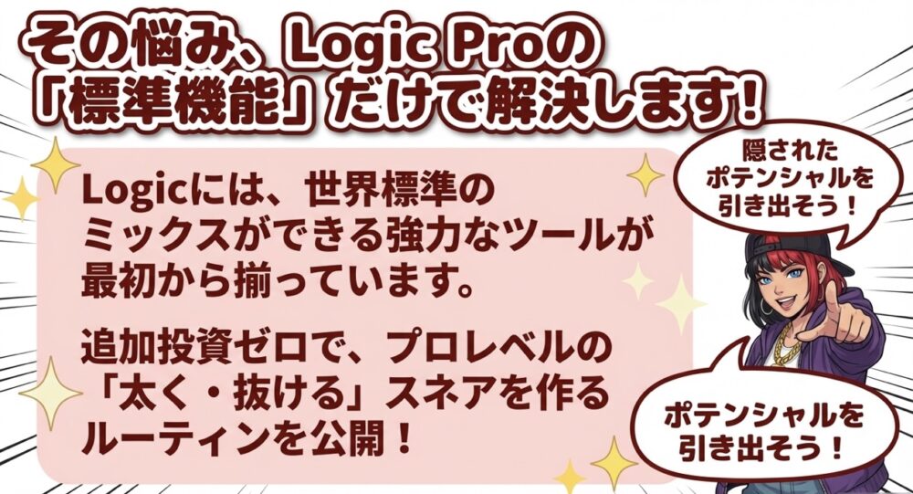 Logic Proの標準プラグインは、その特性を正しく理解し、エンジニアリングの視点で設定を追い込めば、どんなジャンルでも戦える「最強の武器」へと変貌します。