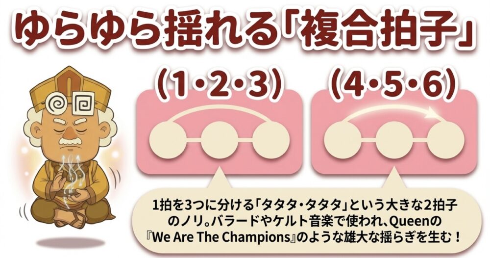 3. 3連符のノリを持つ「複合拍子(ふくごうびょうし)」