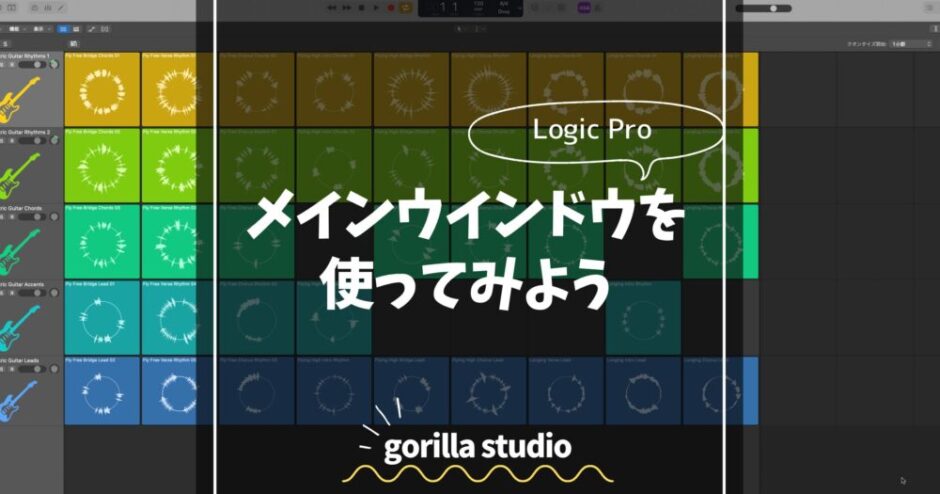 Logic Proのメインウインドウは、プロジェクト全体を操作する中心的な場所です。ここからほぼすべての作業領域にアクセスできます。