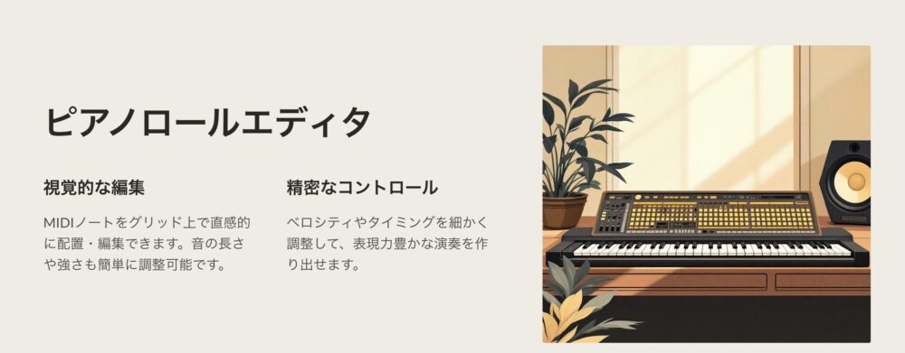 ピアノロール:MIDIノートを視覚的に編集する定番エディタ