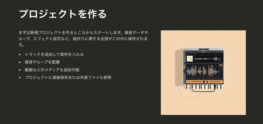 Mac版Logic Proで音楽を作るときの、大まかな流れをざっくり紹介します。