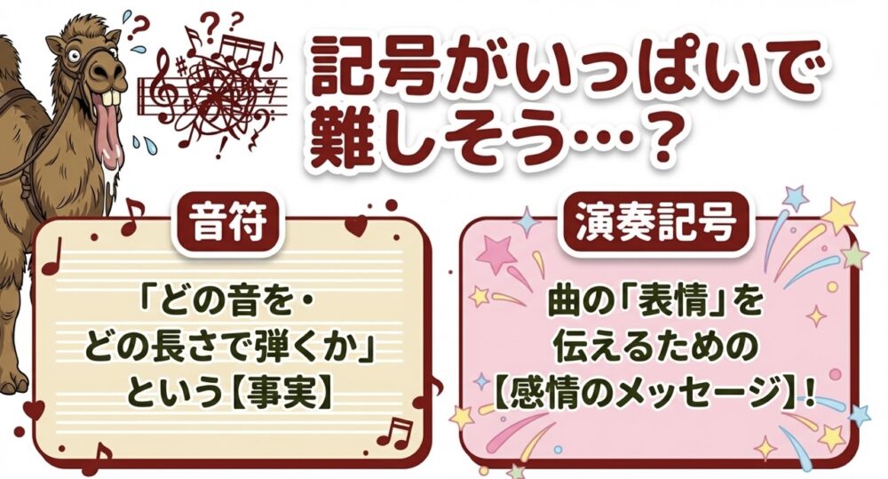 音符が「どの音を・どのくらいの長さで弾くか」という事実を伝えるものだとしたら、今回紹介する演奏記号は、曲の「感情」や「表情」を伝えるためのメッセージです。