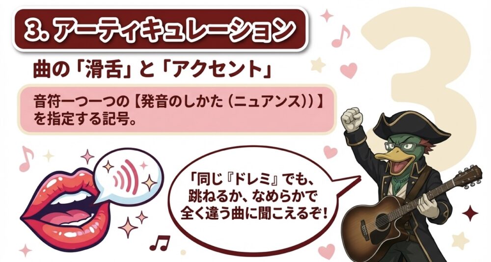 3. アーティキュレーション:曲の「滑舌」と「アクセント」