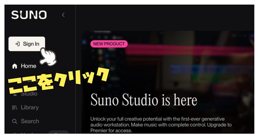 ① SUNO AI公式サイトへアクセス