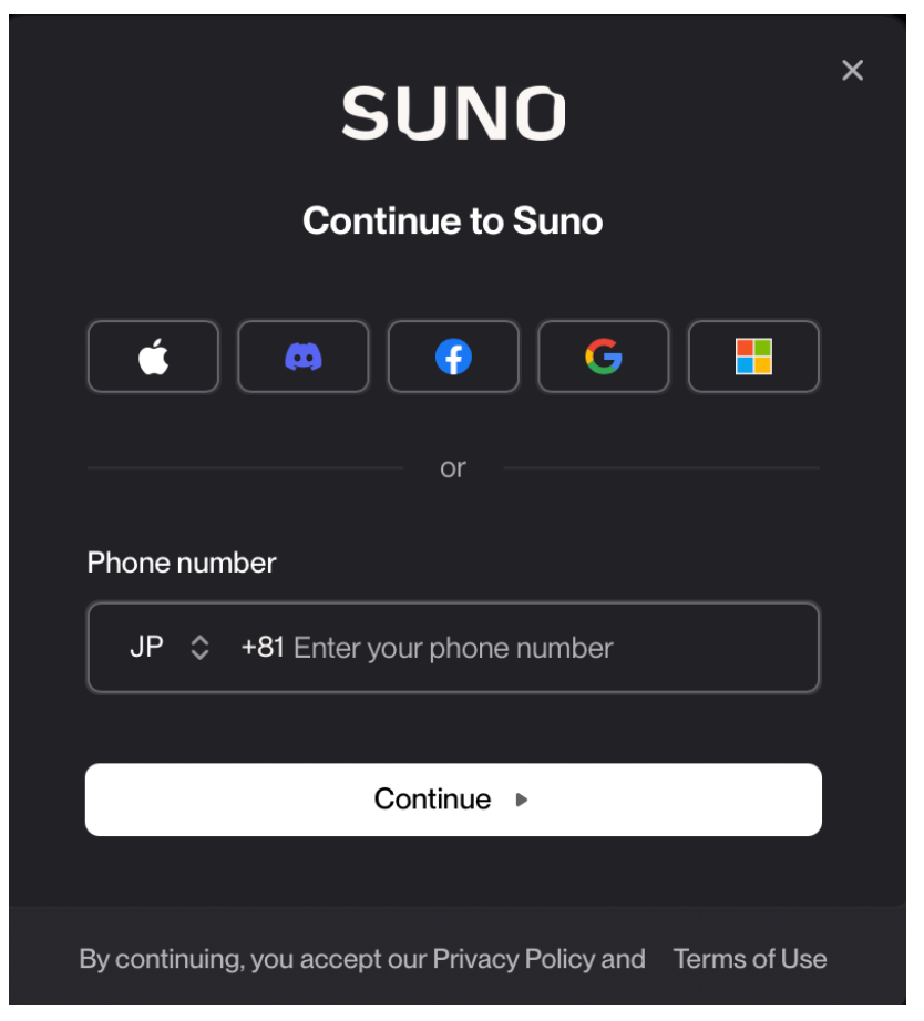 SUNO AIを利用するには、まず公式サイトでアカウントを作成します。