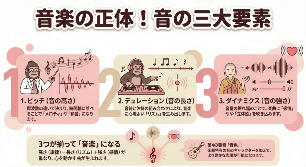 これを理解すると、音楽を聴くときの「耳の解像度」がグッと上がり、演奏や作曲の土台がしっかりと固まります。